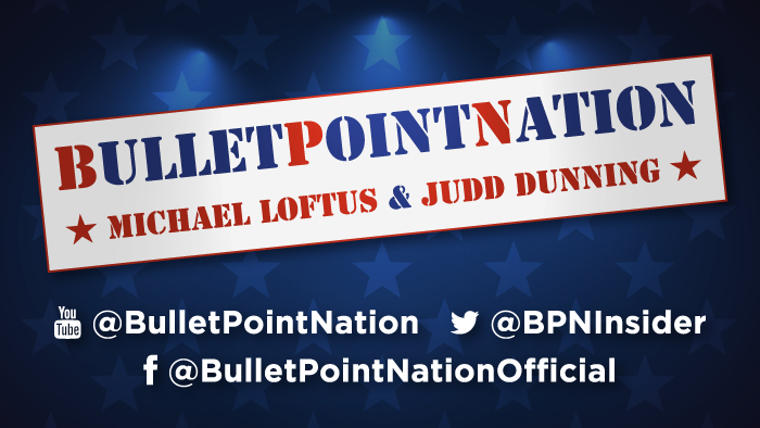 BulletPointNation! 4 Weekly News Topics with 2-minute buzzers. Think ESPN’s Pardon The Interruption meets Gutfield. Join hosts Judd Dunning (Author/News Personality) and Michael Loftus (Comedian/TV Writer and The Loftus Party), and as they cut through the Left Wing Bias with thunder and hilarious fury from the "RIGHT."