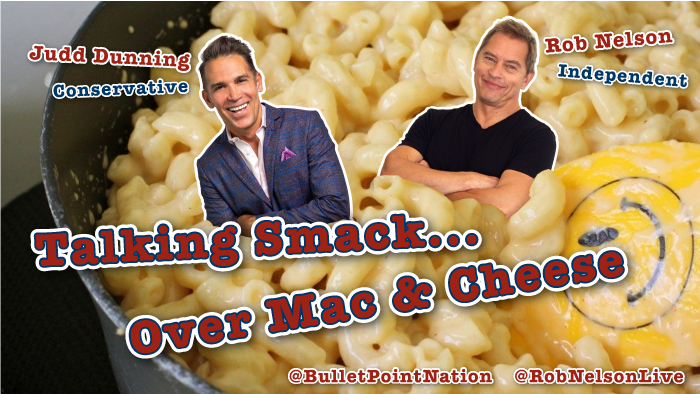 New #BPN Show! "Talking Smack… Over Mac and Cheese" hosts Judd Dunning and Rob Nelson (Fox's The Full Nelson and The Rob Nelson Show) live stream about Food and Politics? Independent vs. conservative battle it out live over what hot and trending in US Politics.